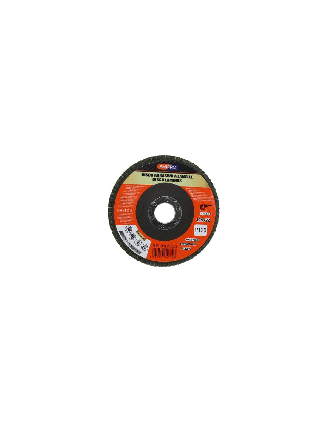 Disco abrasivo con lamelle di carta vetrata a grana grossa per flessibile piccolo. Utilizzabile su legno, acciaio o altri metalli. Dimensione 125 x 22 mm. Grana P120.