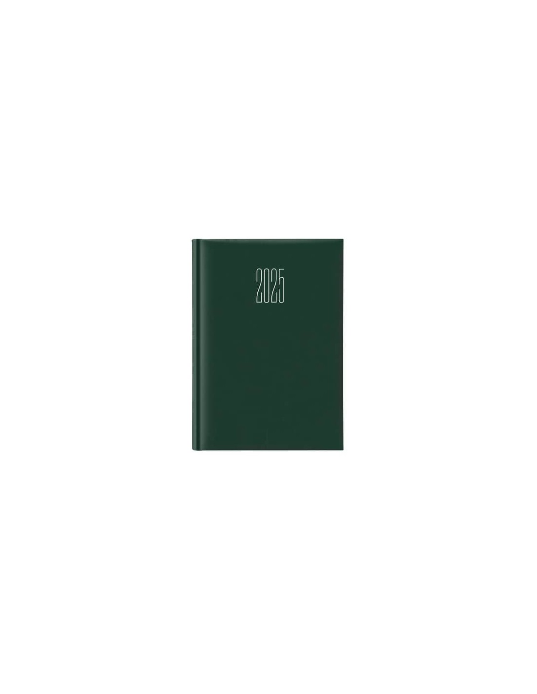 Agenda Giornaliera 17x24 cm Sabato/Domenica Madrid verde. Carta bianca da 70 gr, stampa a 2 colori, lingue I-GB-F-D-E-RUS, 128 pagine compresa rubrica stampata. Copertina imbottita, angoli quadri, dorso tondo, rivestita in Madrid, stampa millesimo a secco e pastello oro.
