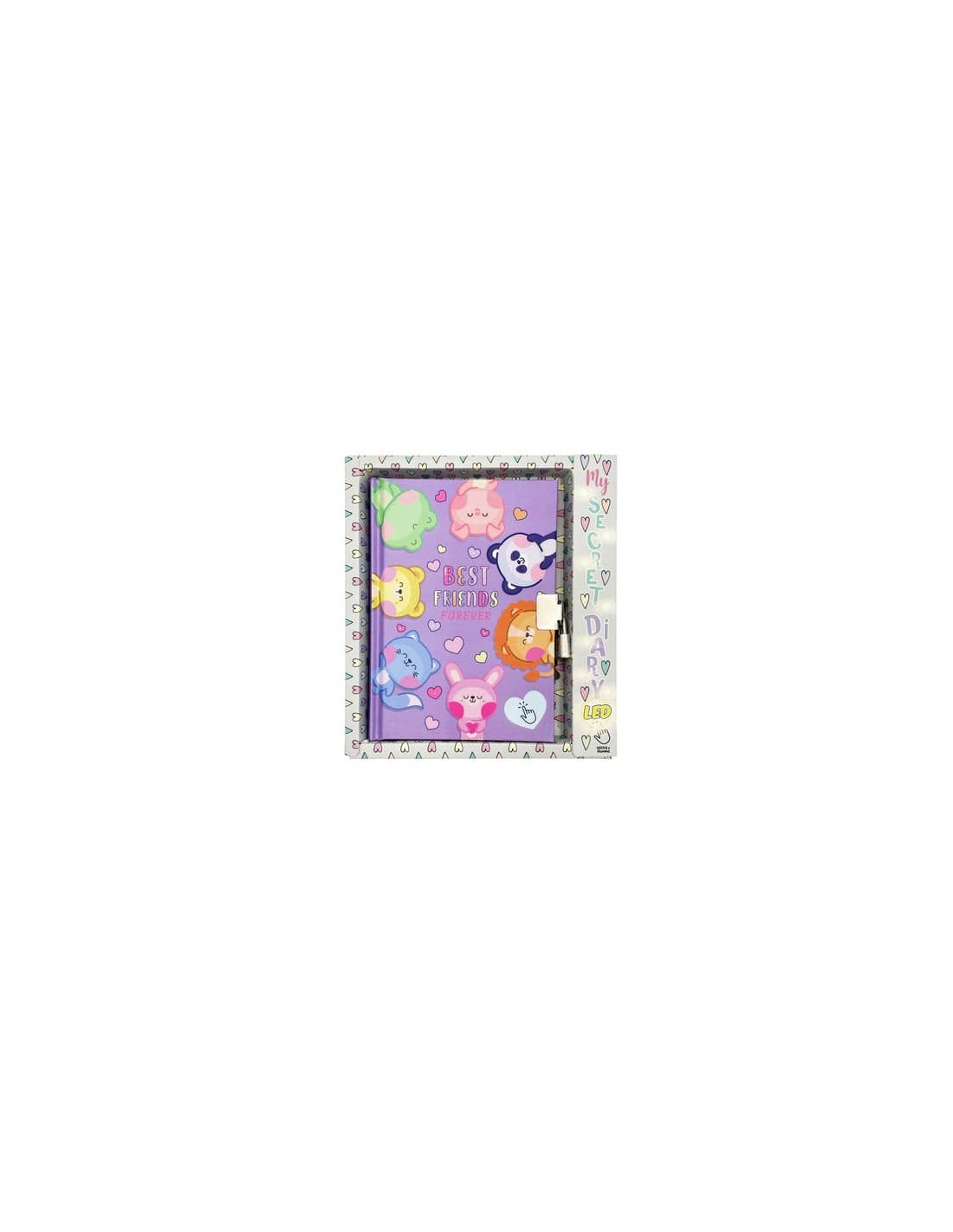 Diario dei segreti composto da 80 pagine con copertina con LED, lucchetto e 2 chiavi. Disponibile in confezione regalo appendibile.