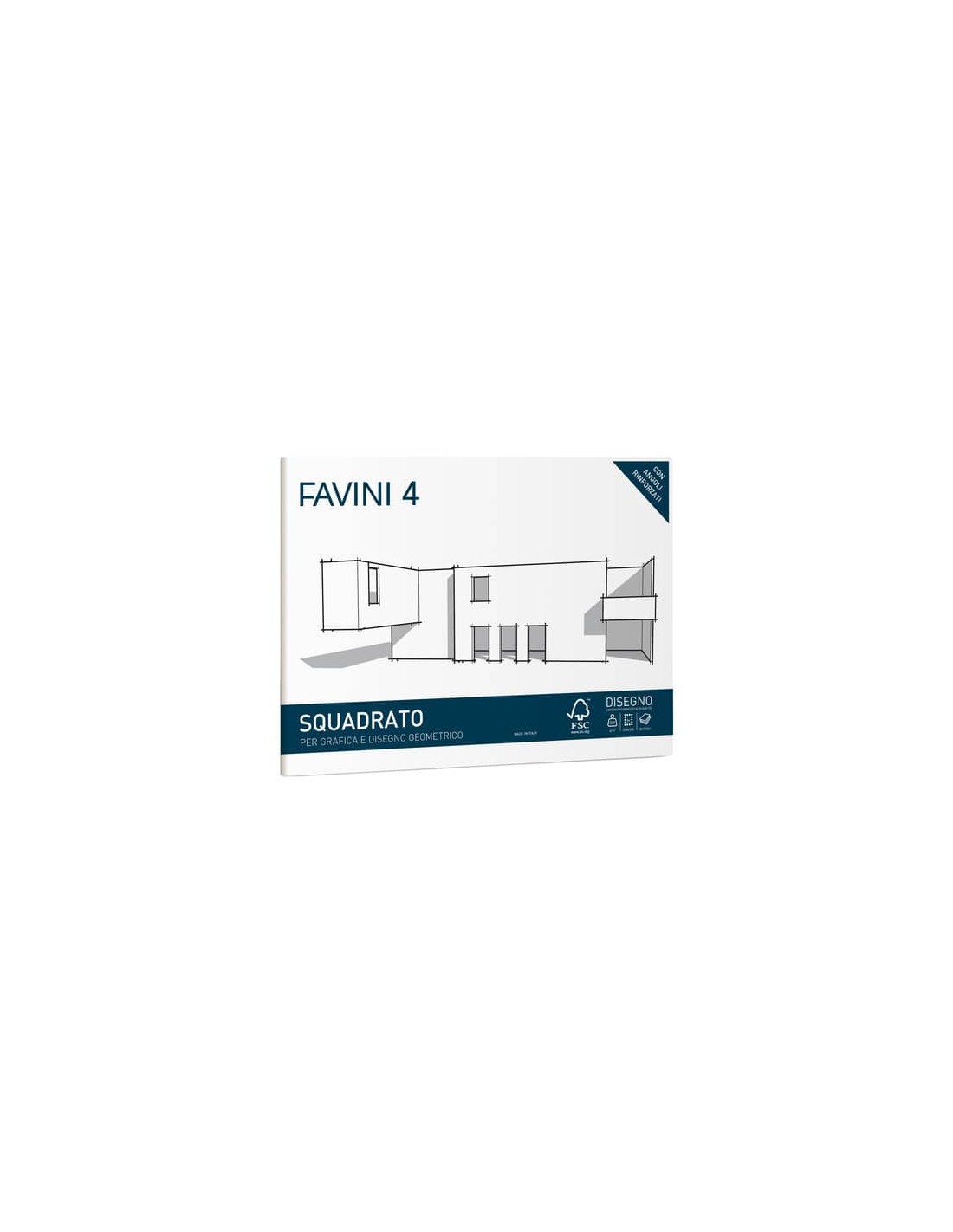 Il cartangolo Favini 4 è appositamente studiato per soddisfare le esigenze degli studenti delle scuole primarie e secondarie e anche di architetti, disegnatori, grafici e illustratori. La carta interna è prodotta con il 100% di cellulosa ECF (elementally chlorine-free). L’alto grado di collatura garantisce una elevata resistenza alle cancellature. Cartangolo liscio squadrato 24x33 cm. 20 fogli da 220 g/m2. Certificazione FSC.