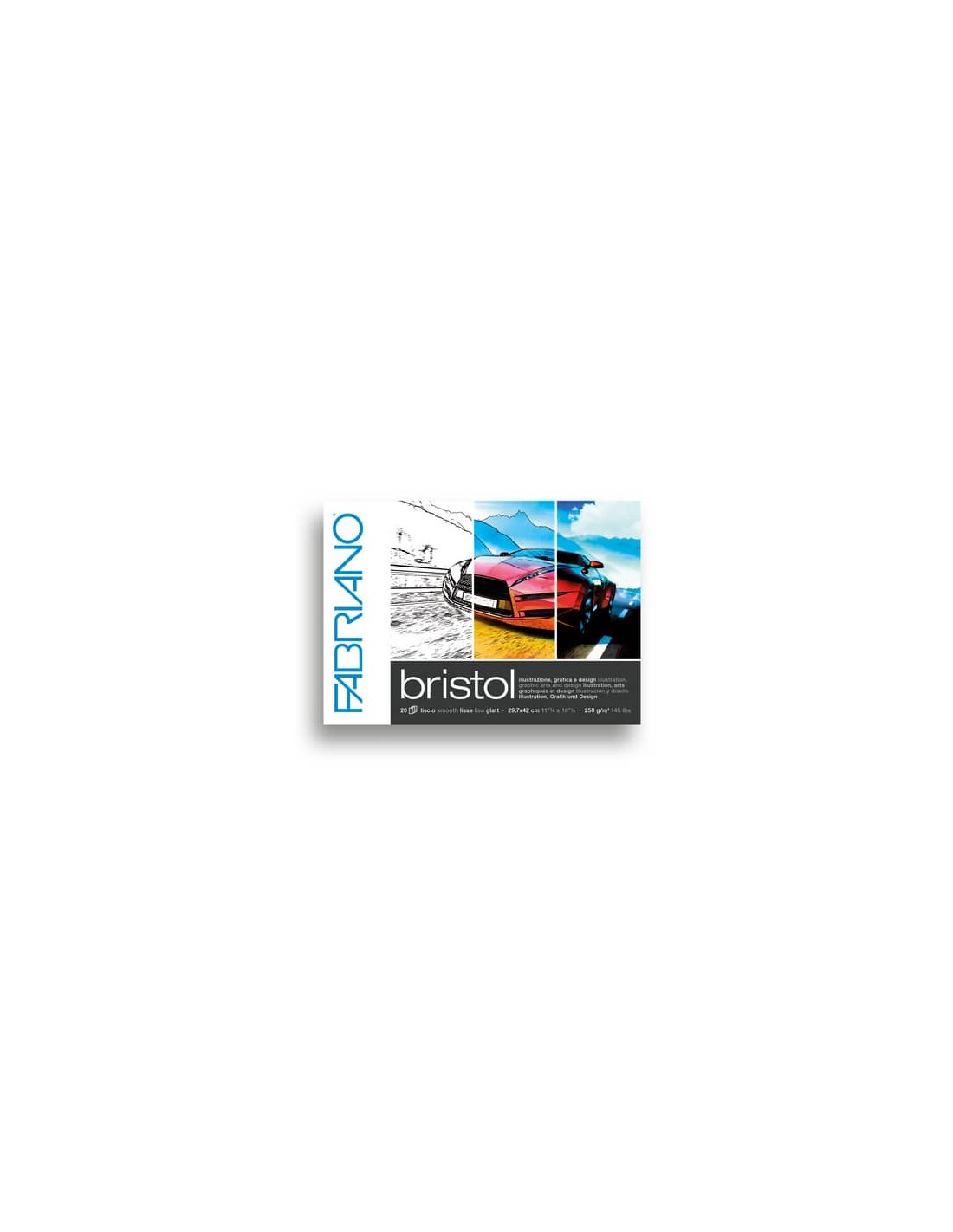Blocco di carta collato su un lato Bristol ultra liscio, ideale per inchiostro, pennarello, marker a solventi, acquarello, gouache, aerografo, matita e carboncino. Resistente alle ripetute cancellature e alla raschiatura. Formato A3, grammatura 250g. Confezione composta da 20 fogli.