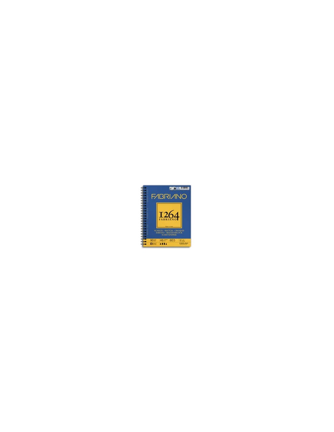 Blocco spiralato 1264 schizzi 90 grammi, la carta presenta una superficie leggermente avoriata con una leggera grana. Permette di realizzare degli schizzi dal vero di una raffinatezza estrema. Fogli microperforati con formato reale dopo lo strappo.Carta certificata FSC, Acid Free e prodotta con energia idroelettrica. Formato A5, 60 fogli. Spirale sul lato lungo.