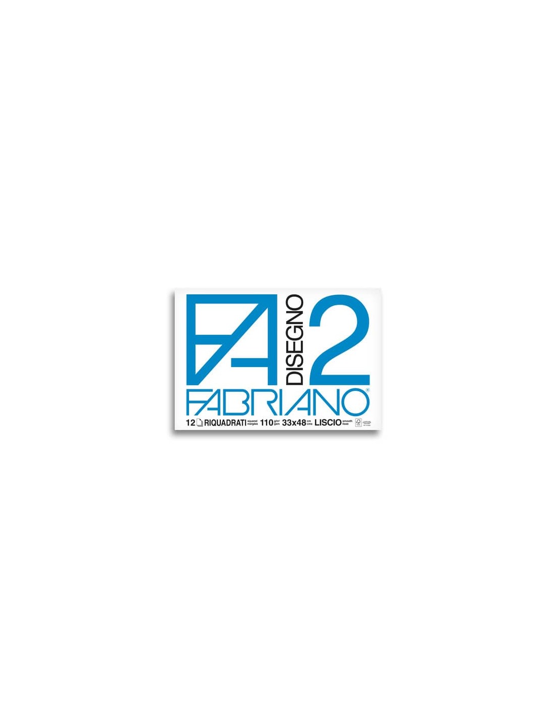 Album Fabriano F2 finitura liscia adatta per matita, pastello, cera, pennarello, china. La filigrana riproduce il marchio ed il logotipo FABRIANO ed il numero 2. Formato: 33x48 cm. finitura: ff. lisci riquadrati. Grammatura 110 g/mq. Nr. fogli: 12.