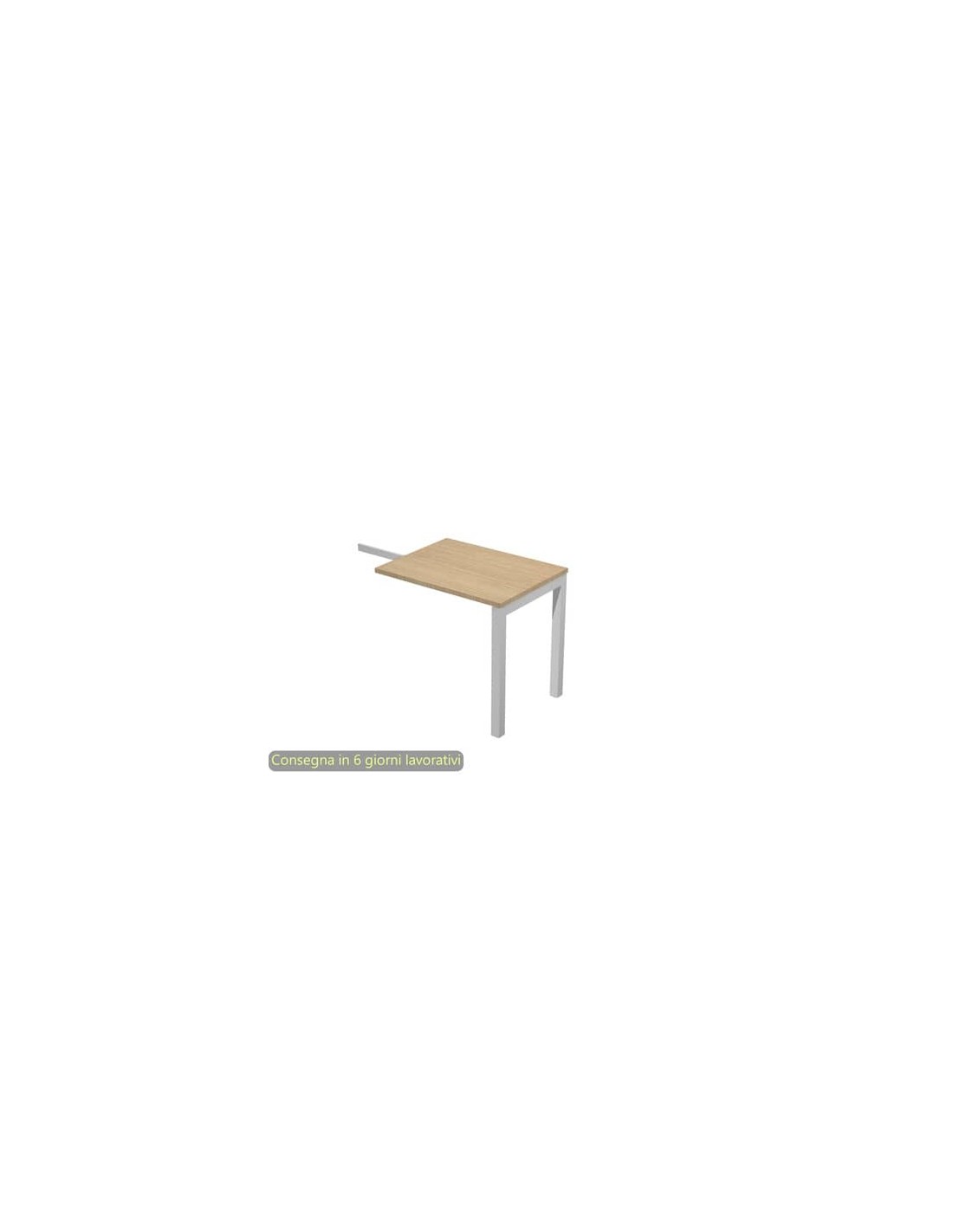 Piano realizzato in materiale bilaminato nobilitato melaminico di spessore 25 mm, antigraffio e antiriflesso, con assenza di spigoli vivi, bordato in ABS di spessore 2 mm. Robusta struttura a ponte in metallo a sezione quadrata (50x50 mm) verniciata a polveri epossidiche color grigio alluminio completa di piedini regolabili in altezza. Fornita di due passacavi diametro 80 mm.
