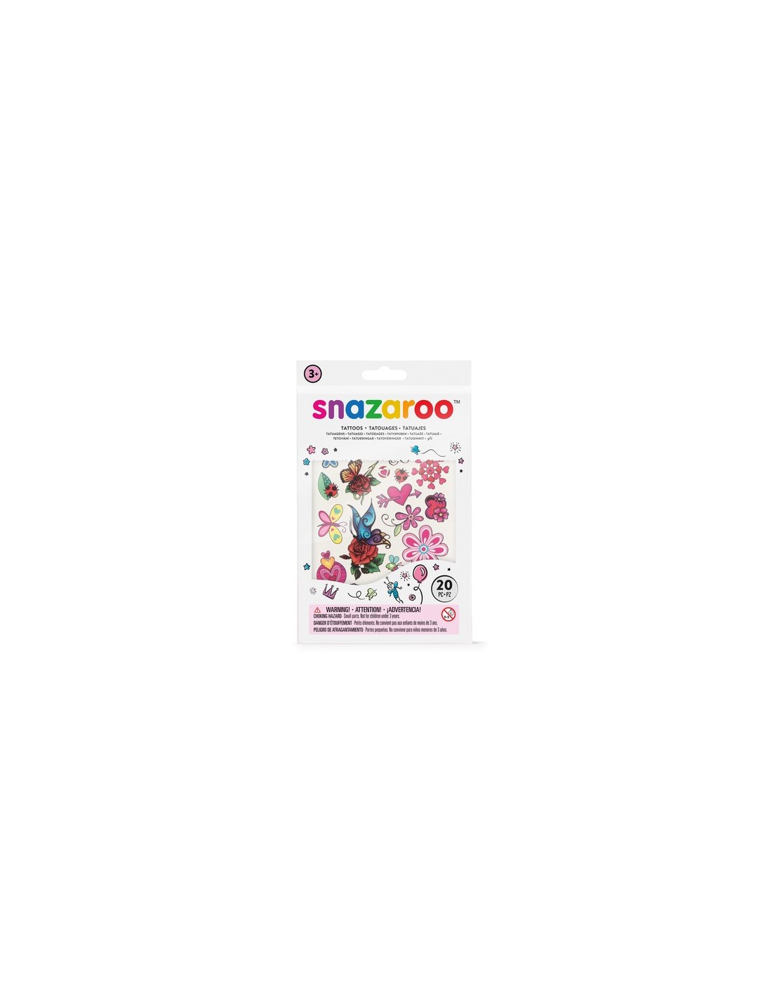 Bustina 20 tatuaggi temporanei Snazaroo Fantasy - fantasia farfalle, fiori e cuoricini - 1198314
