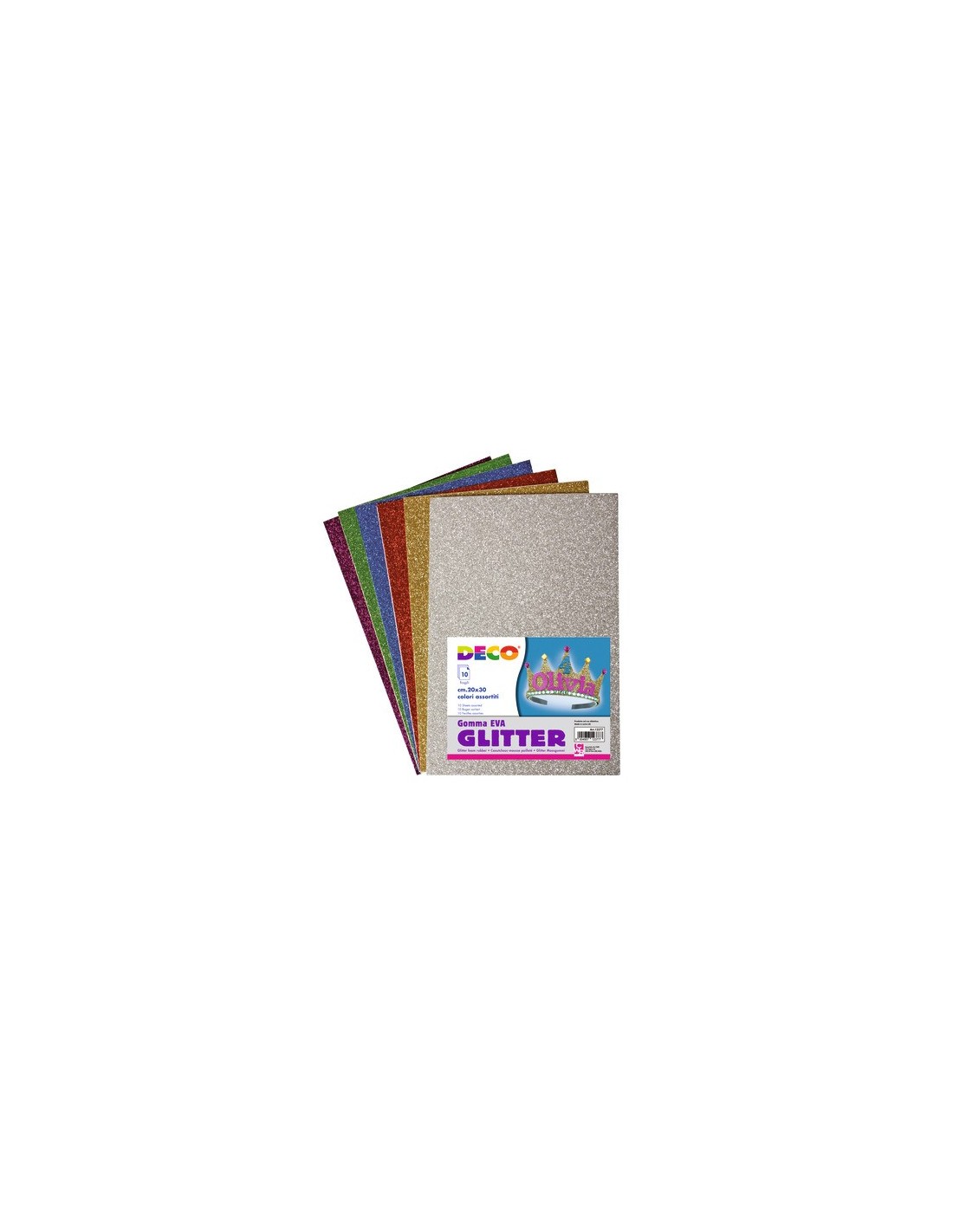 Fogli di gomma Deco Crepp 20x30 cm - conf. 10 fogli in colori assortiti glitterati - 12377
