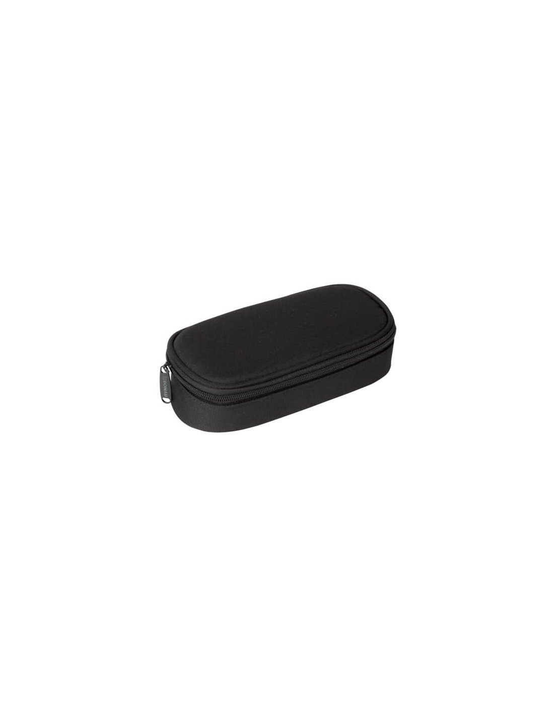 Astuccio ovalino con cerniera piccolo nero. Forma ovale. Aletta interna con passanti per penna. Materiale: poliestere. Dimensioni: 21 x 5,5 x 10,5 cm.