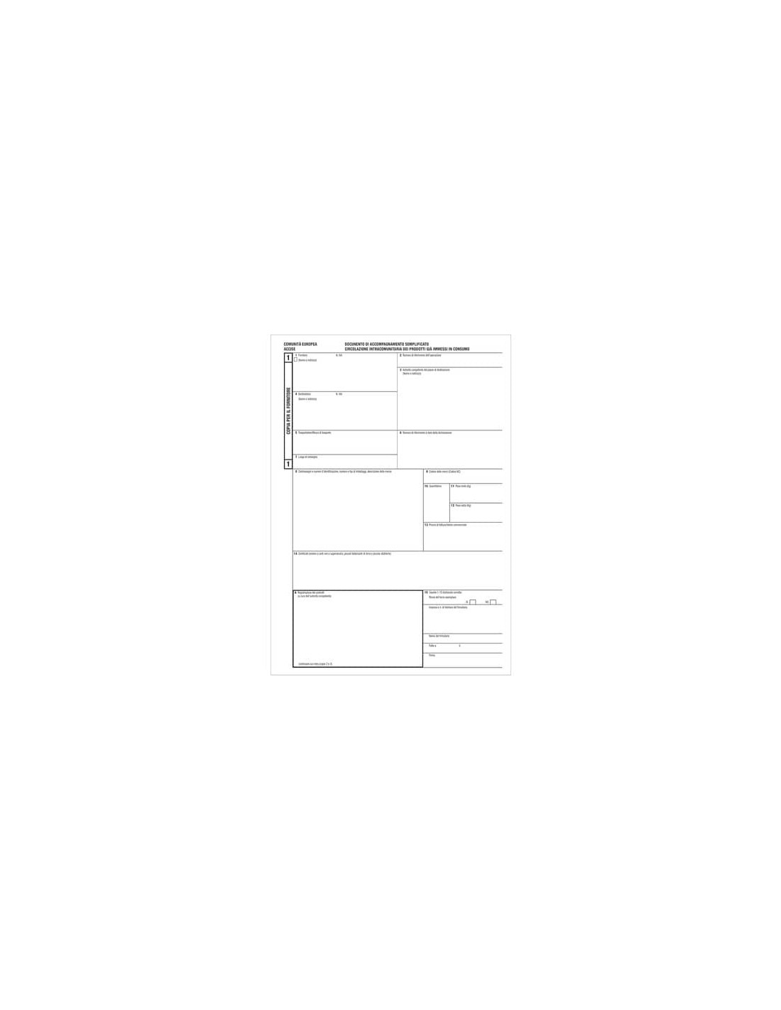 D.A.S. - Documento d'accompagnamento semplificato circolazione intracomunitaria prodotti già immessi in consumo - snap a 3 copie - carta chimica. Documento da 100 fogli.