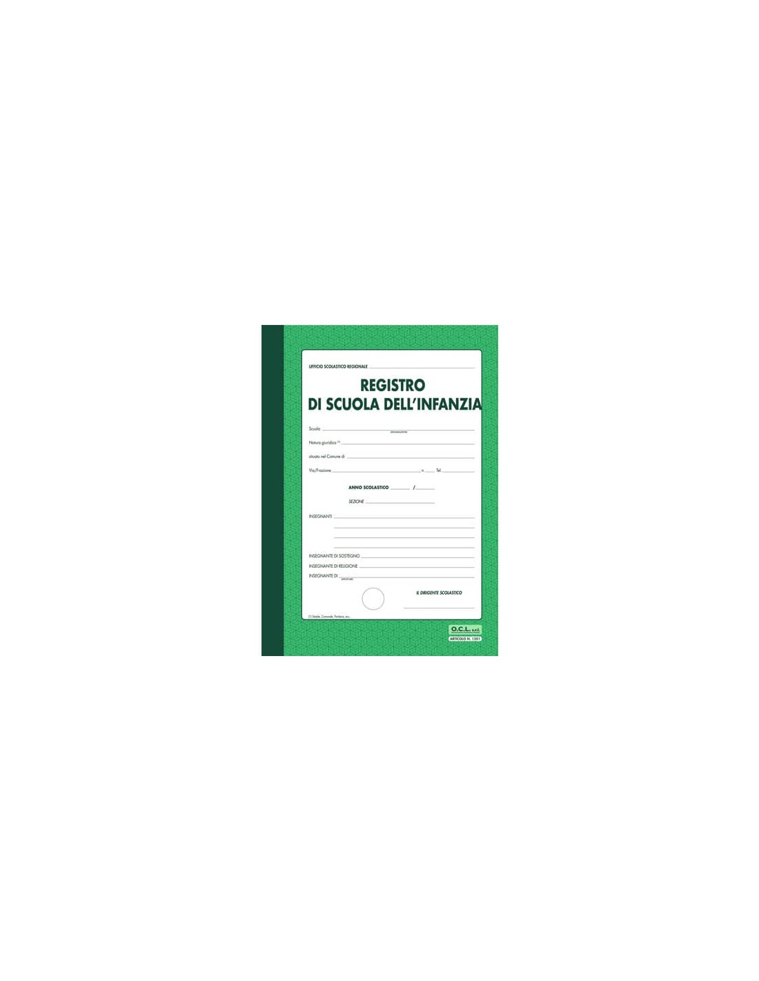 Registro scuola dell'infanzia 40 pagine per 30 alunni O.C.L. verde - 1201