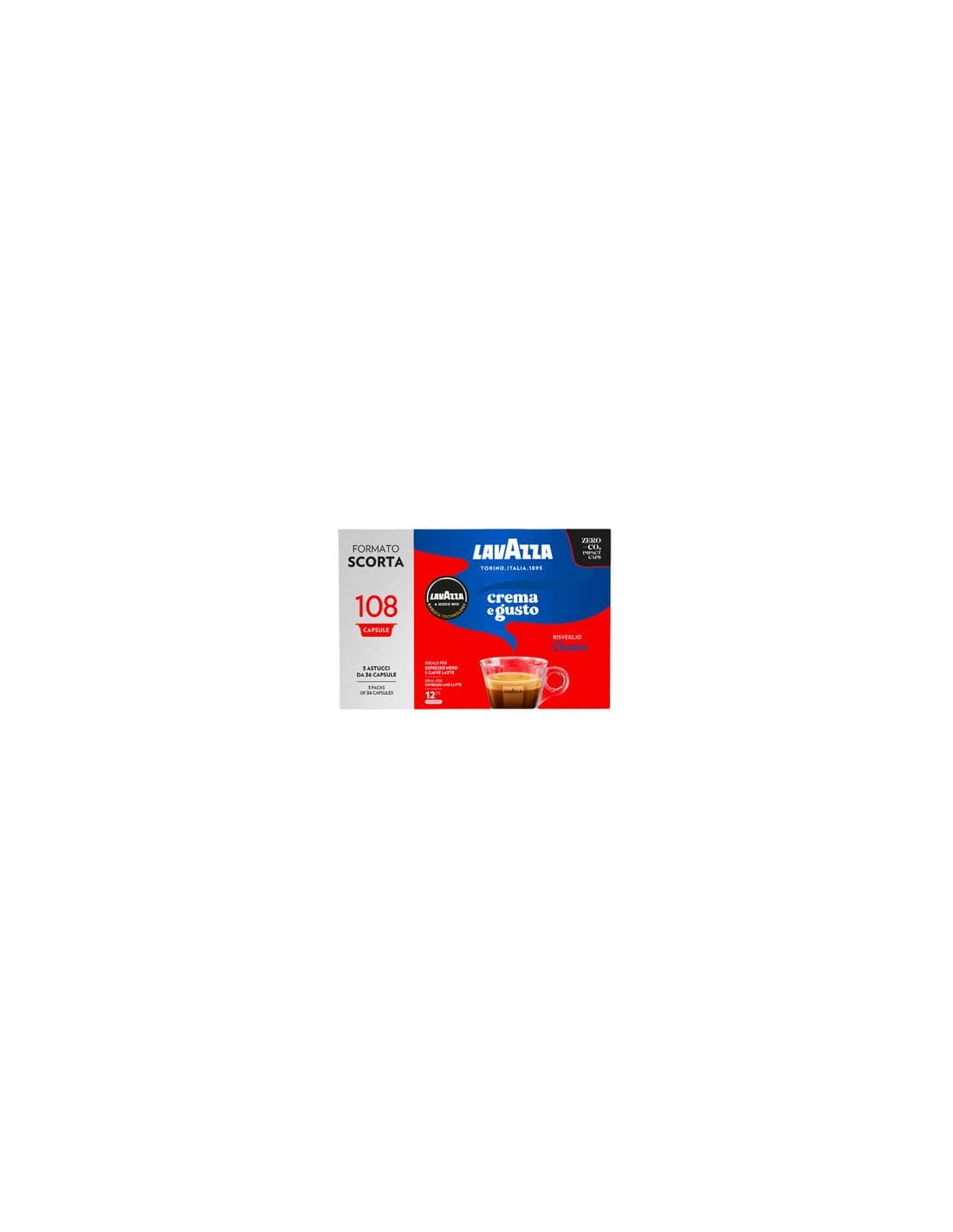 Capsule monodose di caffè macinato A Modo Mio Crema e Gusto confezione da 108 capsule. Dall'incontro di Arabica brasiliane e Robusta africane e asiatiche, un espresso corposo e aromatico, esaltato da note liquorose e cioccolatate, leggermente speziate. Peso netto: 810g.