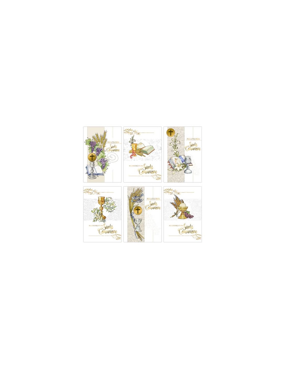 Biglietti augurali da cerimonia. Ideali per celebrare la Prima Comunione. Formato 12x18 cm. Dettagli color oro. Confezione da 6 pezzi.