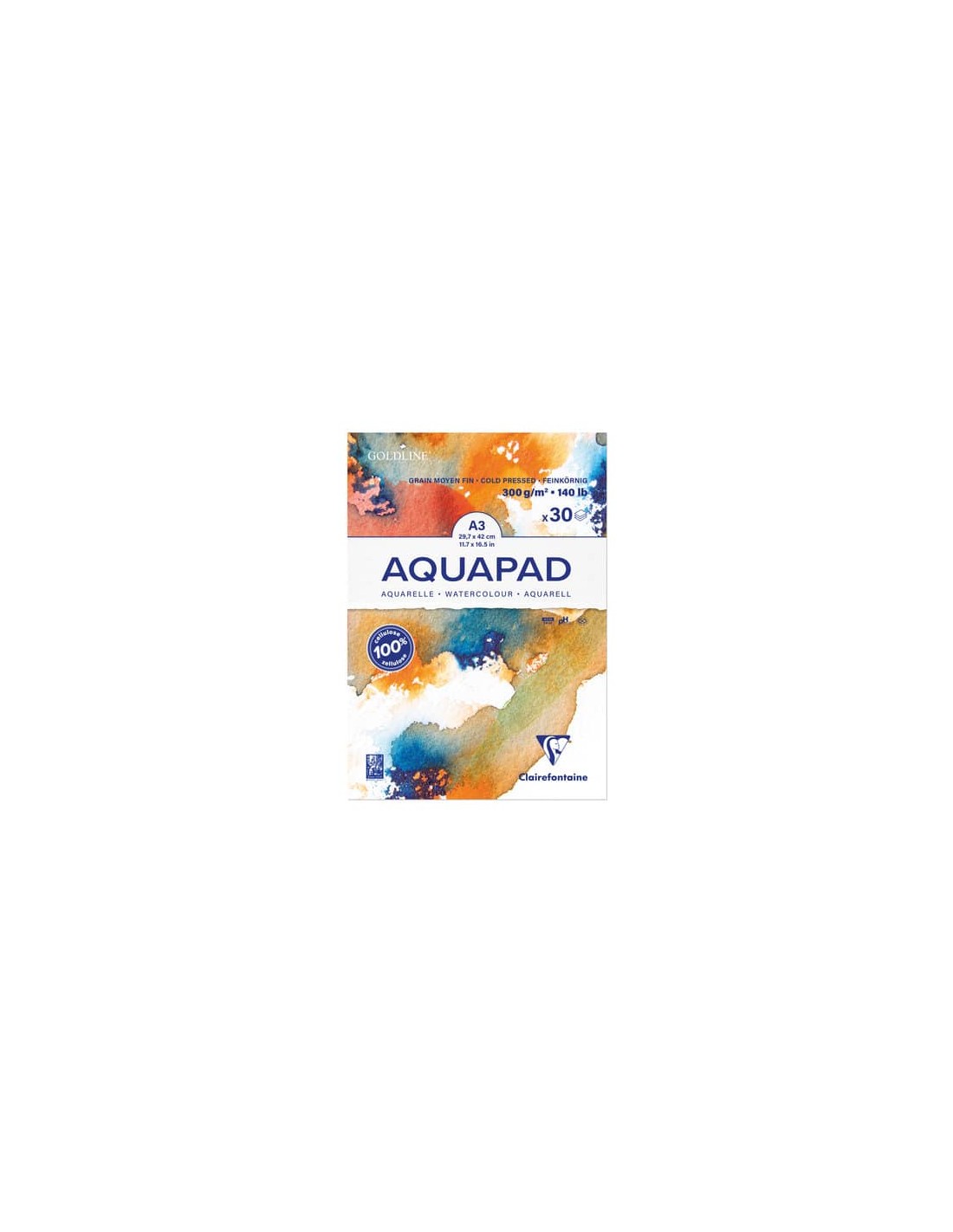 Blocco Aquapad in carta extra-bianca. Composizione: 100% pura cellulosa, 300 grammi, grana leggera. Grande capacità assorbente, ideale per tecniche umide ed acquerello. Maxi blocchi perfetti per studenti grazie all'ottimo rapporto qualità/prezzo. Formato A3. Confezione da 3 pezzi.
