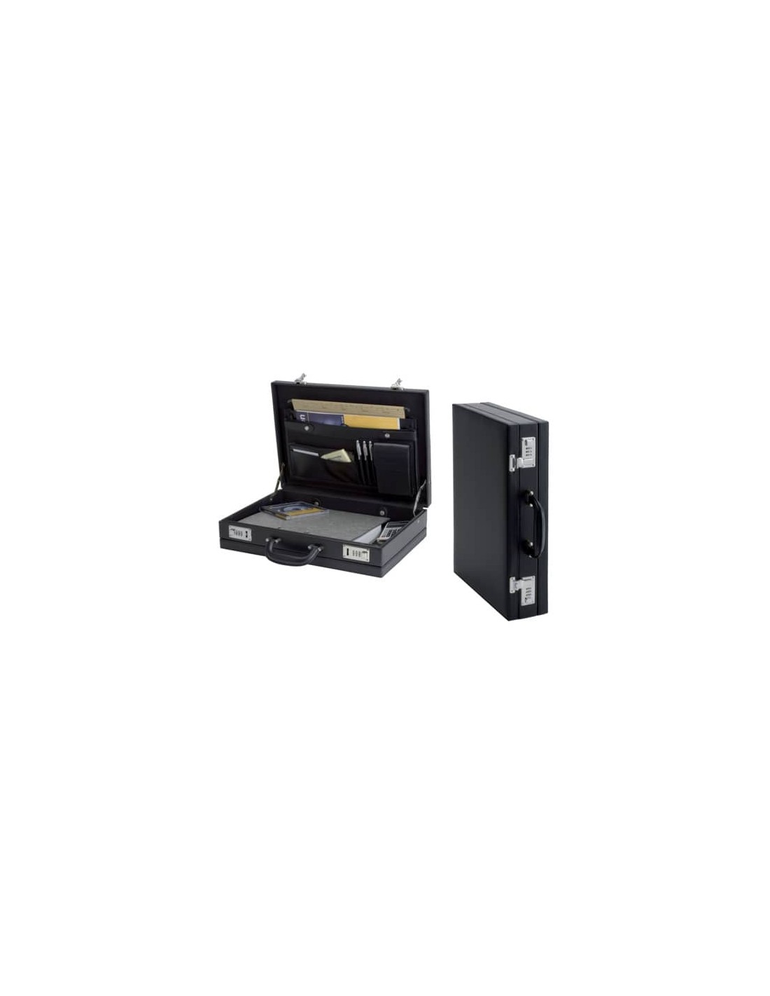Valigetta ventiquattrore con fondo espandibile, due chiusure a combinazione. Internamente: tre passanti per penne, due scompartimenti in formato a A4, due scompartimenti per i biglietti da visita. Colore: nero.