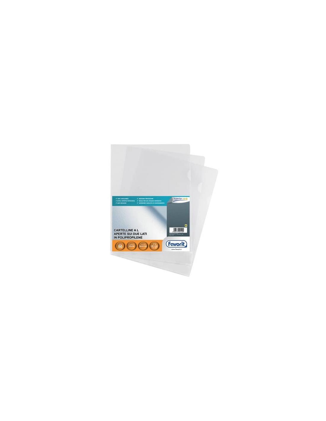 Buste a L Favorit Pratic confezione da 50 pezzi in polipropilene, formato interno 22x30, finitura buccia d'arancia.