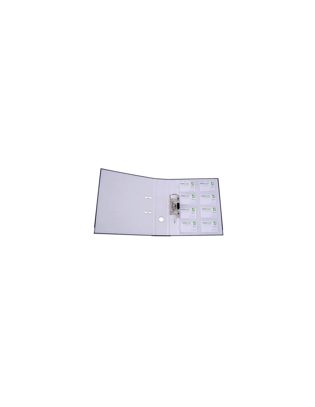 Busta porta biglietti da visita per l'inserimento di un massimo di 16 biglietti da visita per uso fronte / retro. Bordo a foratura universale, materiale in polipropilene 110 mμ trasparente, idoneo per documenti.