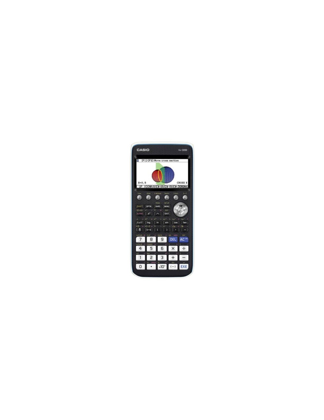 Calcolatrice Grafica CASIO senza CAS ideale per la scuola secondaria di II grado e l’Università, AMMESSA all’esame di maturità e con 3 anni di garanzia. Dotata di ampio display naturale V.P.A.M con oltre 65.000 colori, realizza grafici in 3D. Con Menù ad icone dispone di funzioni quali: Funzione Picture Plot per l’analisi matematica di foto e video, soluzioni di equazioni con funzioni integrali, differenziali e di probabilità, conversioni delle unità, grafici dinamici, di disequazioni, di funzioni parametriche, funzioni finanziarie, Geometry-Add-In precaricato, retroilluminazione, scambio di dati con il PC mediante (cavo USB incluso), tabella periodica, opzione di collegamento diretto ai proiettori CASIO. Alimentazione batteria (4x AAA). Dimensioni LxPxH: 88x21x180 mm. Peso 230 g.