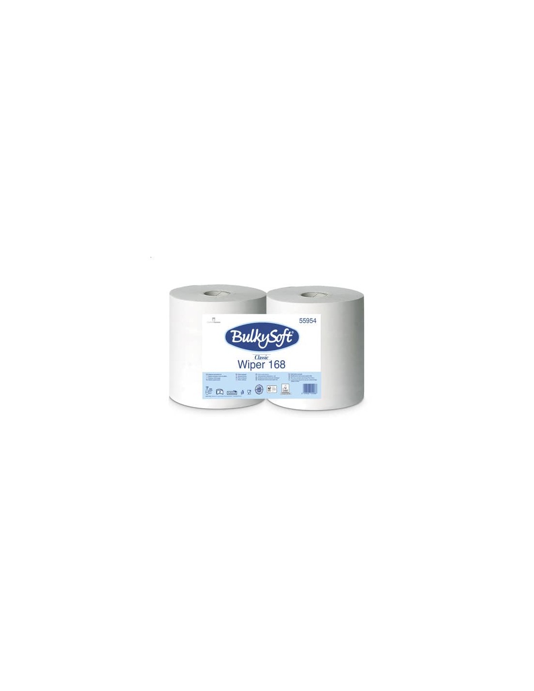 Bobina Wiper 168 evo in pura cellulosa, 800 strappi, 2 veli. Goffratura super micro, grammatura 18 gr/mq, grado di bianco 85.
