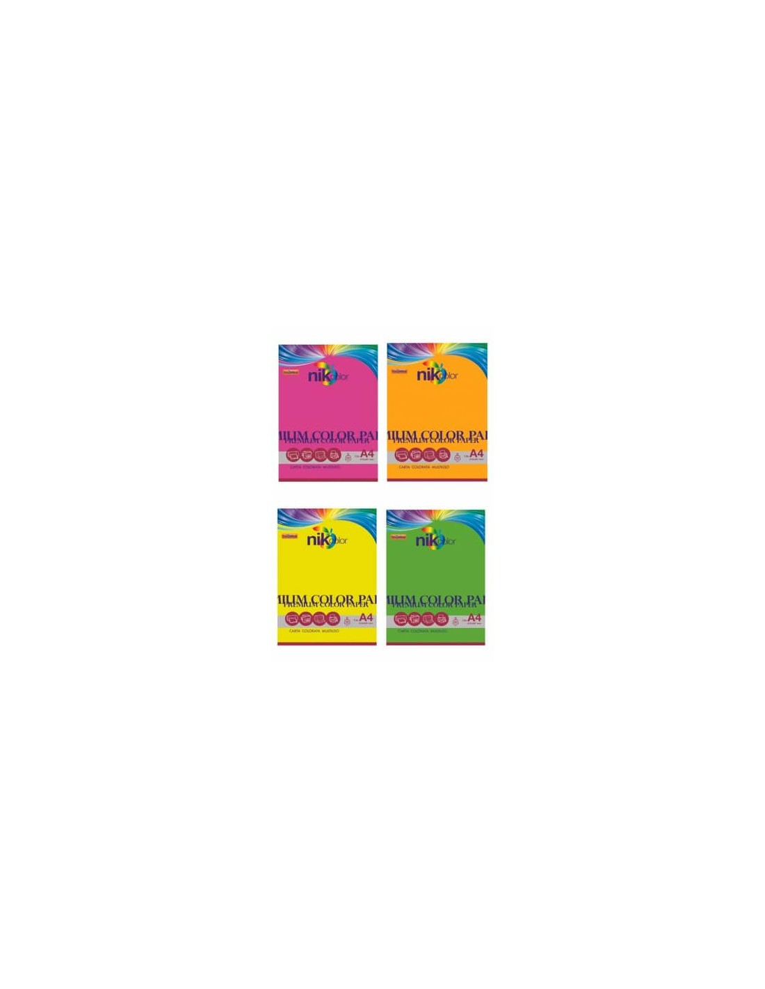 Carta colorata fluo formato A4 Nikoffice 4 colori assortiti fluo 160 g - 125 ff - 23NIK123