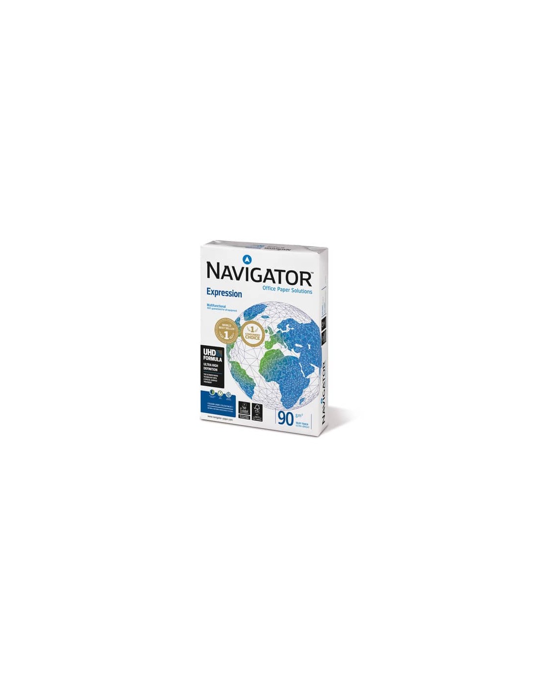 Carta per fotocopie Navigator Office Premium. Formato: A3. Grammatura: 90 g/m2. Punto di bianco 169 CIE. Disponibile in risma da 500 fogli.