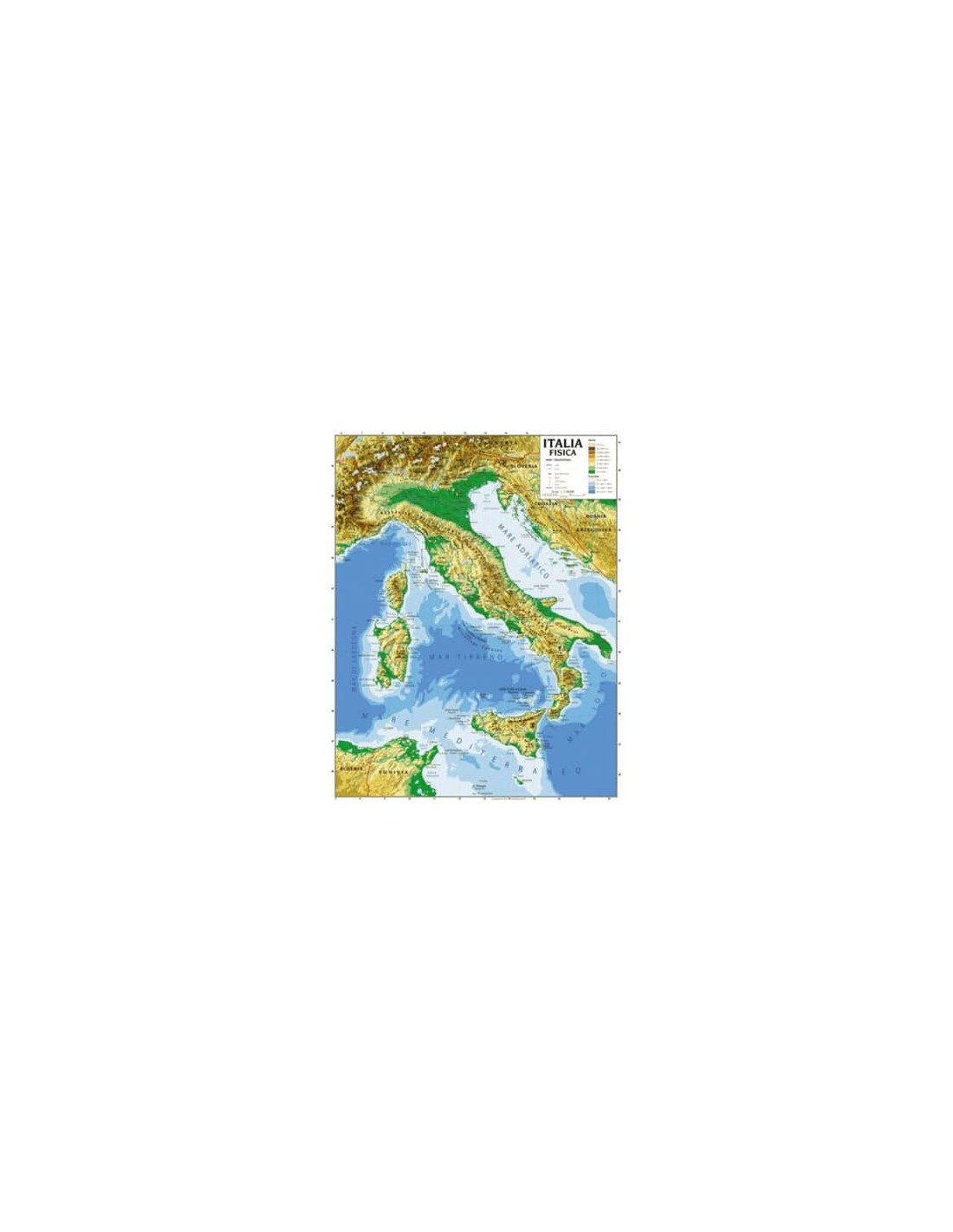 Carta geografica plastificata Italia. Bifacciala: politica da un lato, fisica dall’altro. Dimensioni: 100x140 cm. Per uso