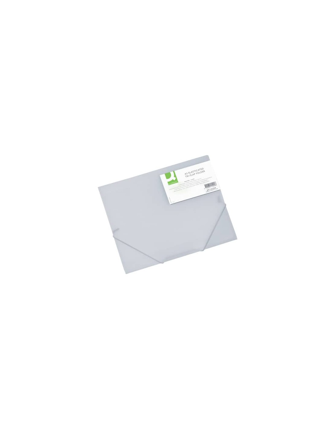 Cartellina a tre lembi in PP traslucido formato A3, con due elastici agli angoli, spessore dorso ca. 3 cm. Colore: trasparente.