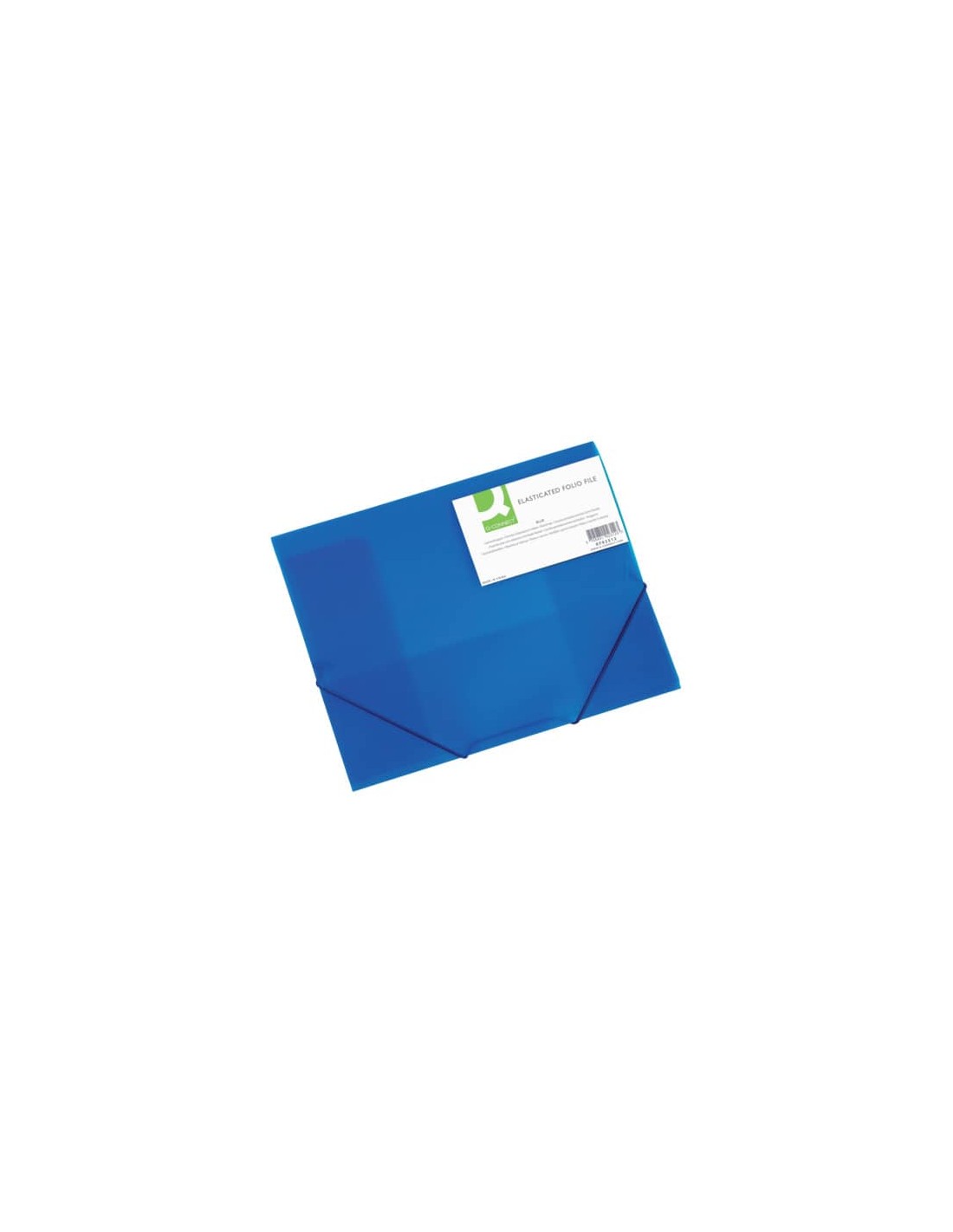 Cartellina a tre lembi in PP traslucido formato A4, con due elastici agli angoli, spessore dorso ca. 3 cm. Colore: blu.