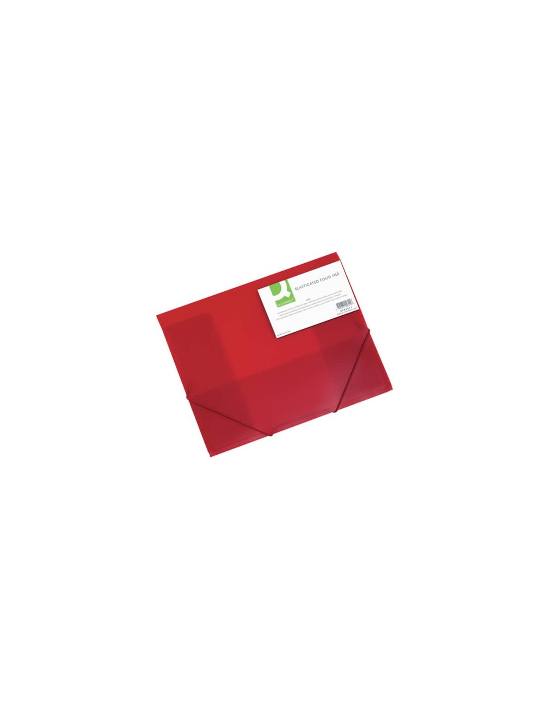 Cartellina a tre lembi in PP traslucido formato A4, 24,5x32 cm, con due elastici agli angoli, spessore circa 400 micron. Colore: rosso.