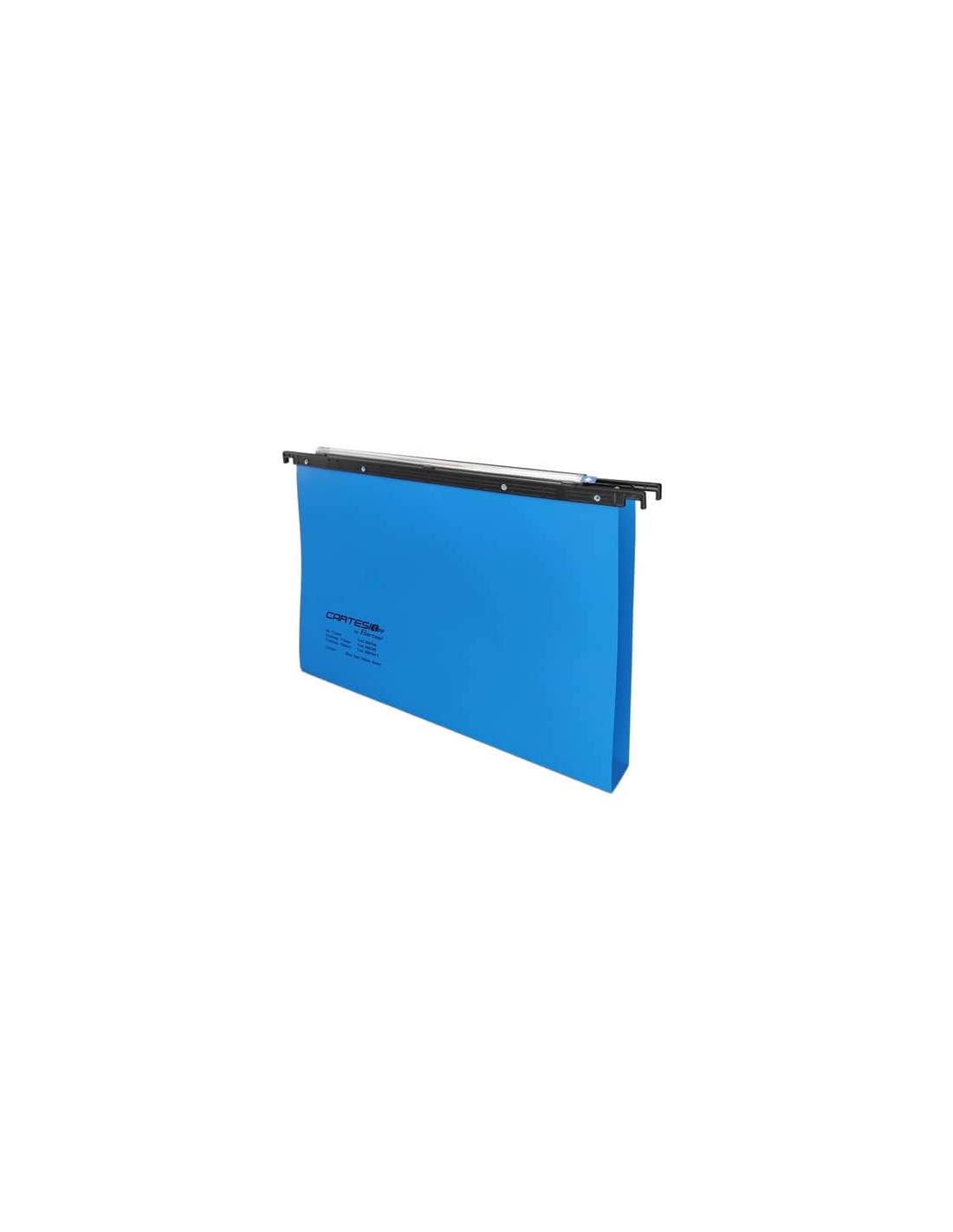 Cartelle sospese di elevata qualità. Realizzate in polipropilene fissato alle aste tramite robusti occhielli metallici. Fogli con spessore 300 micron per i modelli fondo a V e 500 micron per i modelli fondo U. Portaetichette ad effetto lenticolare. Etichette con bordo colorato per l’immediato reperimento dei fascicoli. Interasse 39 cm. Fondo ad U 3 cm. Confezione da 25 pezzi. Colore: blu.