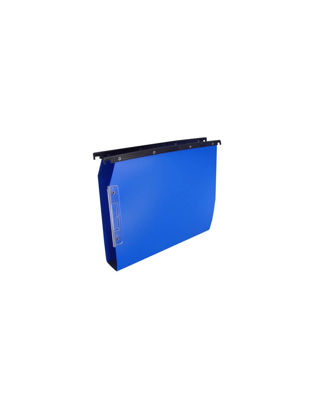 Cartelle sospese di elevata qualità. Realizzate in polipropilene fissato alle aste tramite robusti occhielli metallici. Fogli con spessore 300 micron per i modelli Fondo a V e 500 micron per i modelli fondo U. Portaetichette ad effetto lenticolare. Etichette con bordo colorato per l’immediato reperimento dei fascicoli. Interasse 33 cm. Fondo ad U 3 cm. Confezione da 25 pezzi. Colore: blu.