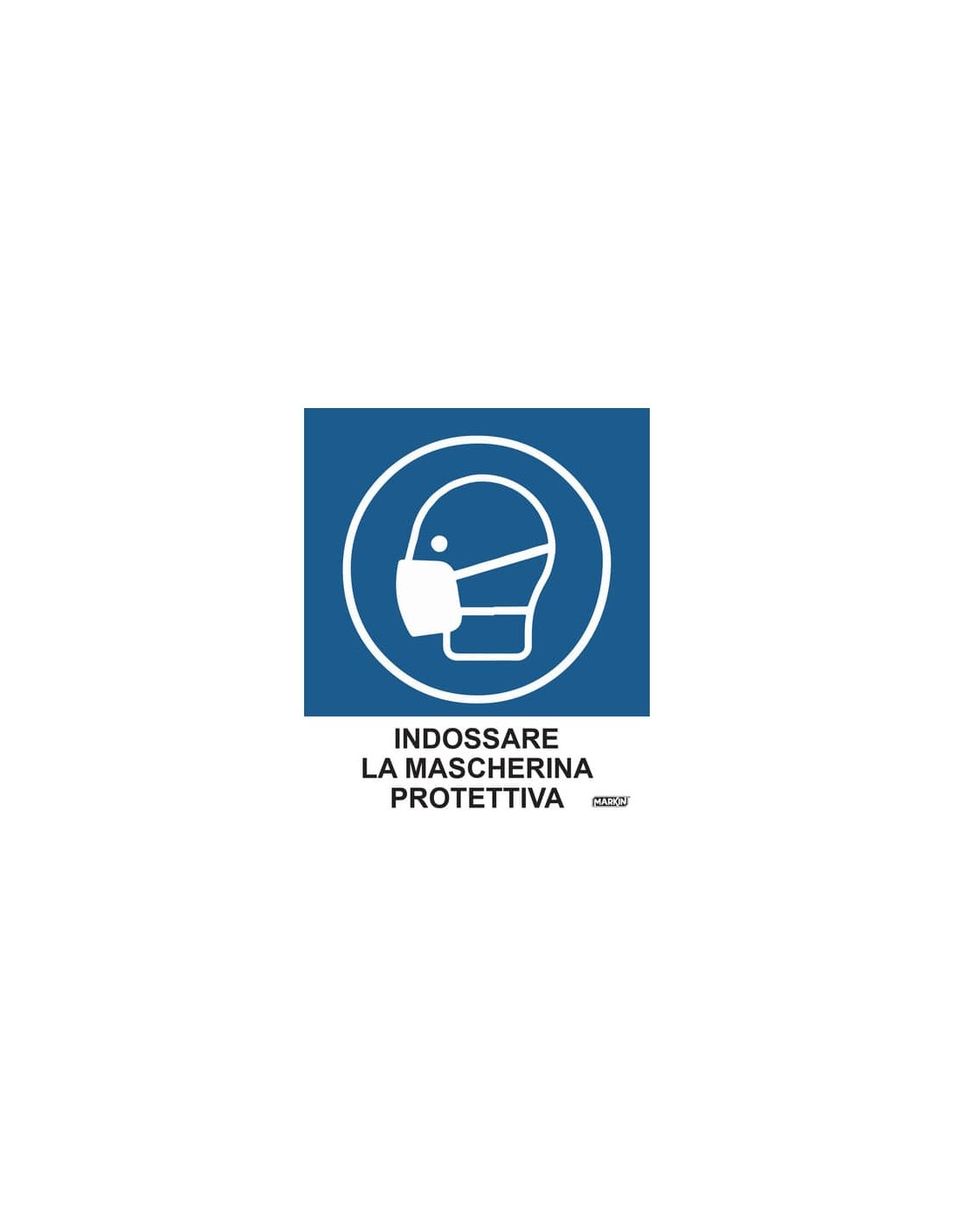Busta da due adesivi segnaletici in poliestere LWM con stampa "Indossare la mascherina protettiva". Formato 12,5x15,2 cm, colore bianco-blu.