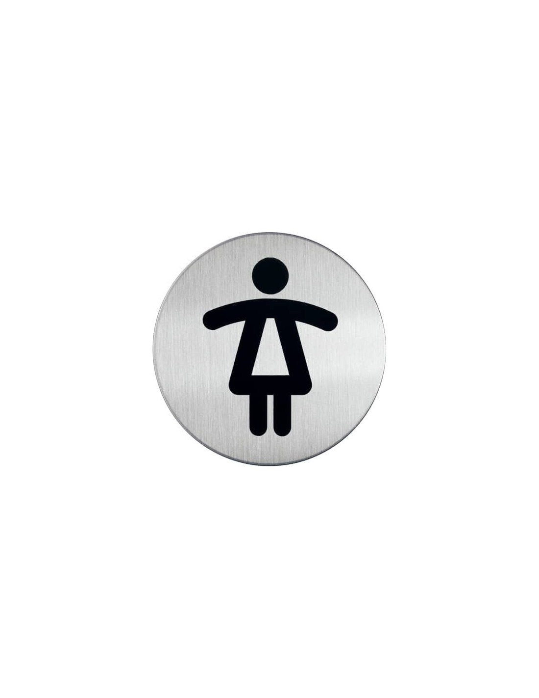 Pittogramma tondo Ø 83 mm, con simbolo "WC DONNE". In acciaio inossidabile spazzolato di alta qualità. Dotati di potente adesivo sul retro che assicura un'applicazione duratura nel tempo. Serigrafie impresse a laser, resistenti e antiabrasione. I pittogrammi DURABLE possono essere interpretati al primo sguardo da chiunque, sono adatti per essere esposti in qualsiasi ambiente e sono immediatamente riconoscibili. Applicabili su qualsiasi materiale, creano una combinazione particolarmente elegante applicati a superfici vetrate.