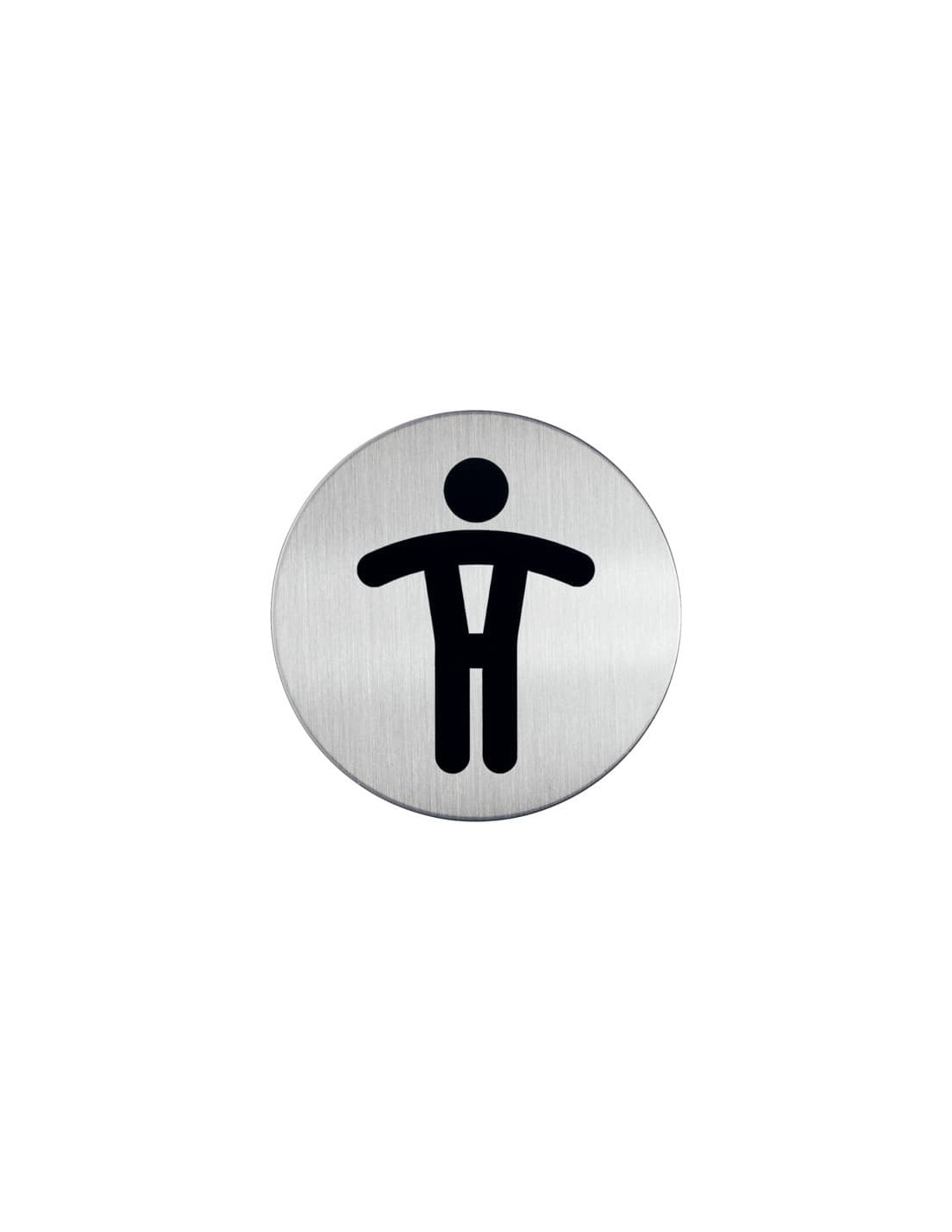 Pittogramma tondo Ø 83 mm, con simbolo "WC UOMINI". In acciaio inossidabile spazzolato di alta qualità. Dotati di potente adesivo sul retro che assicura un'applicazione duratura nel tempo. Serigrafie impresse a laser, resistenti e antiabrasione.