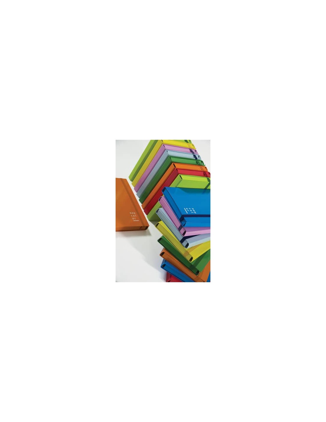Cartelle portaprogetti a 3 lembi New Color con elastico piatto, rivestite in carta stampata e plastificaficata con finitura lucida. Formato 25x35 cm.