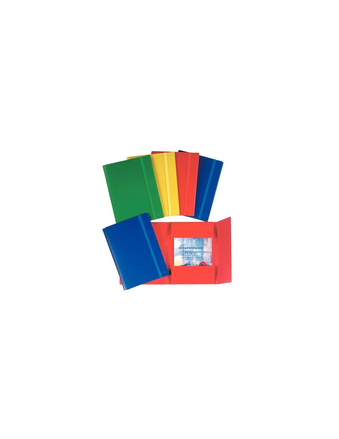 Cartella a tre lembi con elastico tondo, realizzata in presspan biverniciato lucido. I lembi di ampie dimensioni permettono una superiore capacità d’archivio e una migliore protezione del contenuto. Formato 23x35 cm, colore giallo, grammatura 260g.