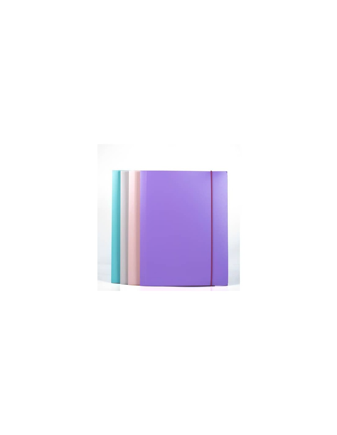 Confezione assortita 4 cartelline a tre lembi reversibili. Doppio colore interno/esterno. La confezione comprende anche 4 elastici aggiuntivi per la personalizzazione da parte dell'utilizzatore. Realizzate in PPL 0,6 mm. Tre alette a cordonatura multipla sorreggono saldamente qualunque tipo di documento in formato A4. Chiusura con elastico. Indistruttibili e 100% riciclabili, resistenti all'umidità. Confezione da 4 colori assortiti: viola/fucsia, celeste/sabbia, acquamarina/arancio, rosa/giallo.