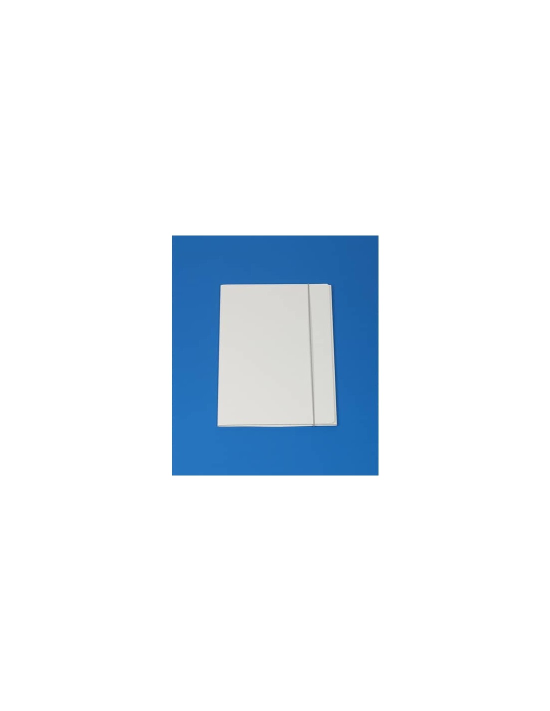 Cartelle in cartone plastificato dai colori brillanti con alette e chiusura ad elastico. Spessore 0.8 mm, formato 25 x 34 cm. Colore bianco.