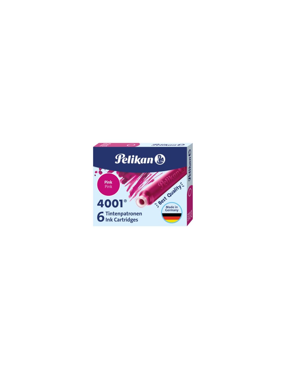 Cartucce inchiostro di ottima qualità in tanti colori brillanti.Le cartucce Pelikan assicurano un’ottima resa e il funzionamento perfetto di qualsiasi tipo di stilografica. Nella versione blu royal, il tratto è cancellabile con i cancellatori d’inchiostro Pelikan e si toglie dai tessuti con acqua e sapone. Disponibili nella versione standard TP/6 (in astuccio da 6 cartucce o in confezione da 12 cartucce) e nella versione GTP/5, che corrisponde a 2 cartucce. Colore rosa.