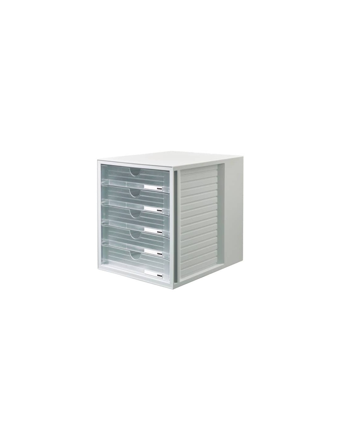 Cassettiera a 5 cassetti chiusi per formati di carta (DIN A4/C4). Colore: grigo chiaro lucido. Cassetti con blocco all’estrazione e con porta etichette per la descrizione. Sovrapponibili. Lavorazione robusta. Adatto per armadi e la scrivania. Con piedini in gomma protettivi ed antiscivolo. In polistirolo (PS) di alta qualità. Dimensioni esterne: L.275 x H.320 x P.330 mm.