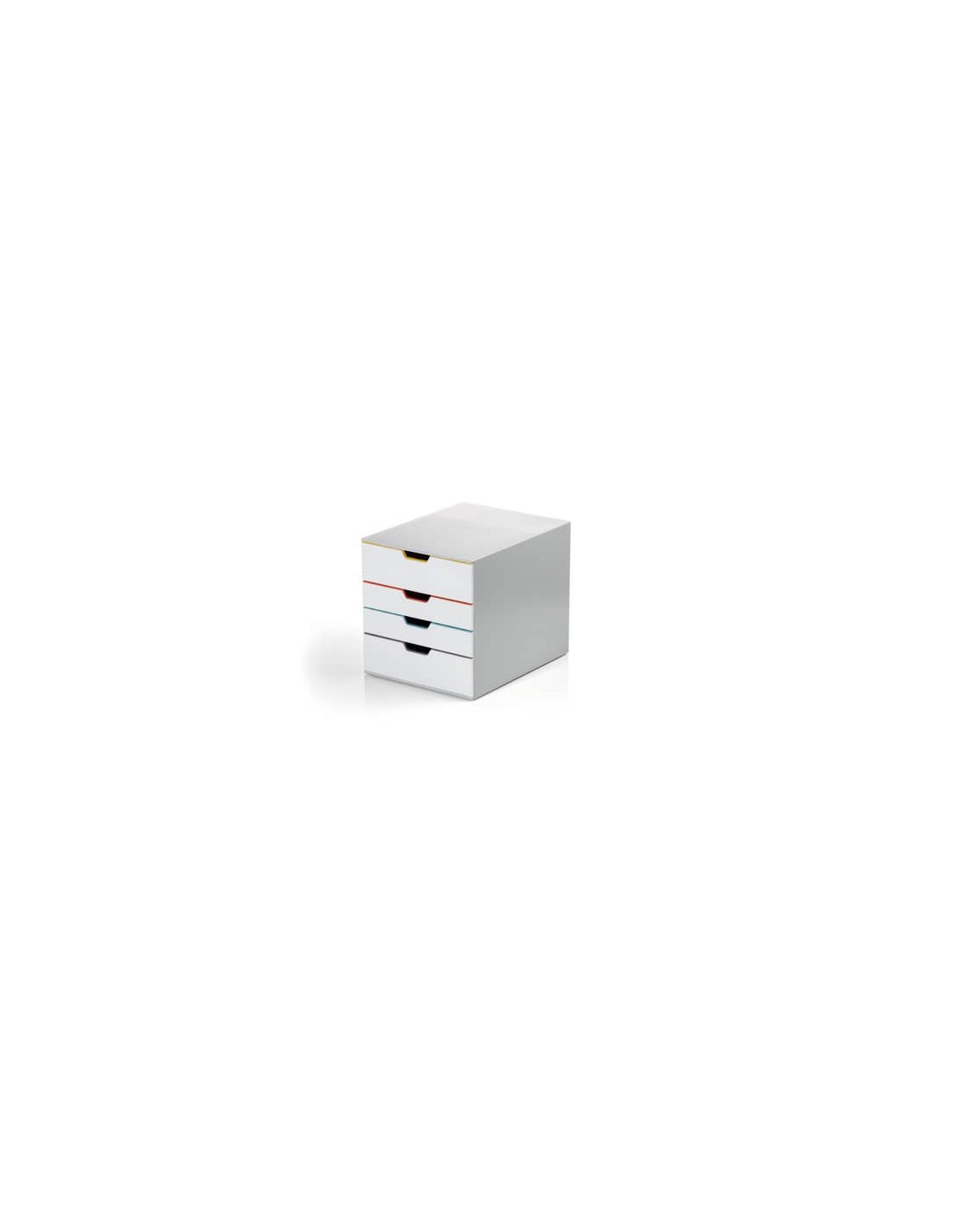 Cassettiera con 4 cassetti colorati per l’archiviazione e organizzazione dei documenti. I 2 cassetti XXL offrono un ampio spazio di archiviazione. Cassetto superiore con serratura a cilindro richiudibile, ideale per l’archiviazione di documenti riservati e oggetti personali. Realizzata in ABS e PS di alta qualità. Cassetti hanno uno scorrimento silenzioso e sono dotati di blocco di fine corsa. Per documenti formato A4, C4 e Lettera e Folio. Dotata di porta etichetta trasparenti con facile sostituzione degli inserti. Impilabile grazie ai piedini antiscivolo in plastica. Possono essere affiancate in qualsiasi armadio o mobile da ufficio. Garanzia di 5 anni. Oltre alla garanzia, per 5 anni dopo l'acquisto è a vostra disposizione gratuitamente anche il nostro servizio di ricambi per i porta etichetta trasparenti e gli inserti in cartoncino; potete richiederli a titolo gratiuto a service@durable.de. Dimensioni esterne: 280x292x356mm. Dimensioni interne cassetti: 242 x 330 mm. Colore: grigio. Profili cassetti multicolore: senape, corallo, acqua, tortora e grafite.
