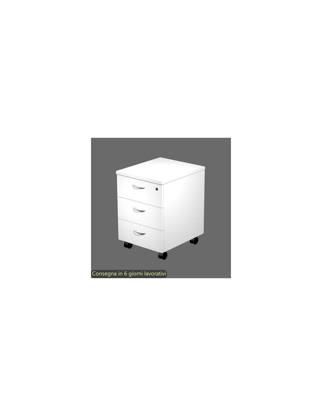 Cassettiera a 3 cassetti della serie Presto, una linea economica ma caratterizzata da soluzioni tecniche di livello superiore. Cassetti scorrevoli su guide metalliche con fermo a fine corsa, di cui il primo fornito anche di serratura. Con ruote pivotanti.