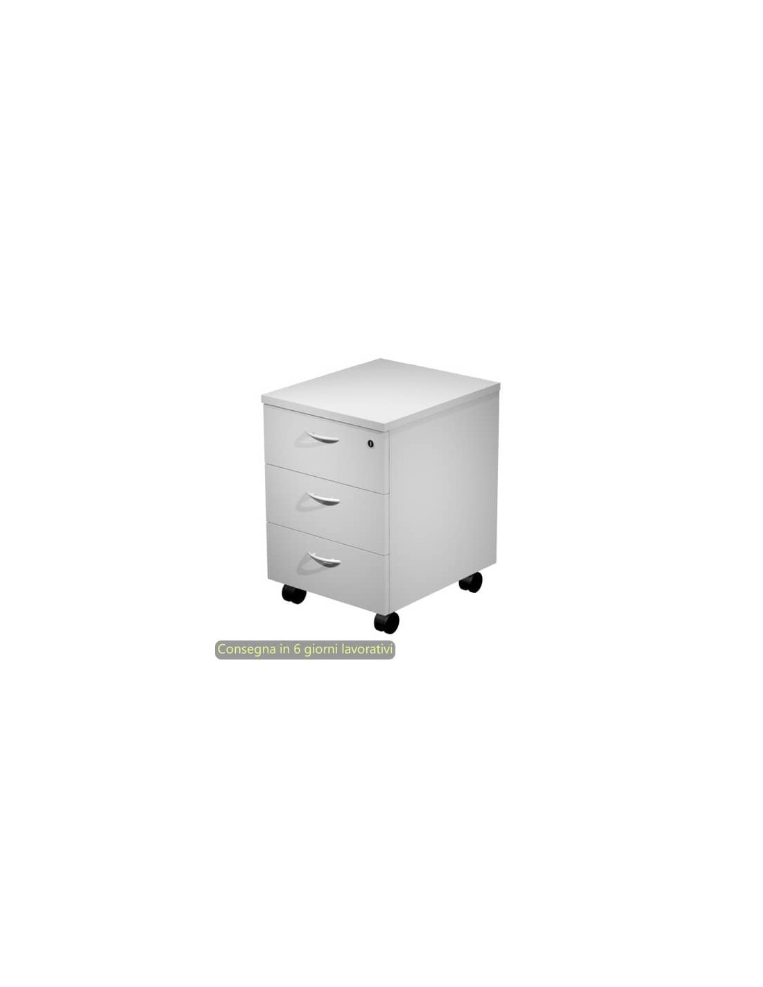 Cassettiera a 3 cassetti della serie Presto, una linea economica ma caratterizzata da soluzioni tecniche di livello superiore. Cassetti scorrevoli su guide metalliche con fermo a fine corsa, di cui il primo fornito anche di serratura. Con ruote pivotanti.
