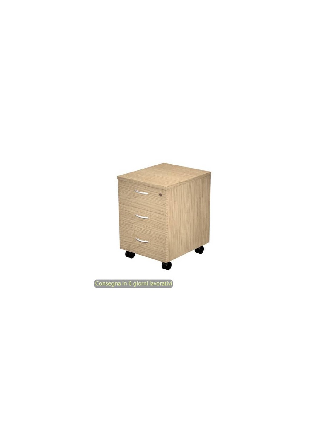 Cassettiera a 3 cassetti della serie Presto, una linea economica ma caratterizzata da soluzioni tecniche di livello superiore. Cassetti scorrevoli su guide metalliche con fermo a fine corsa, di cui il primo fornito anche di serratura. Con ruote pivotanti.