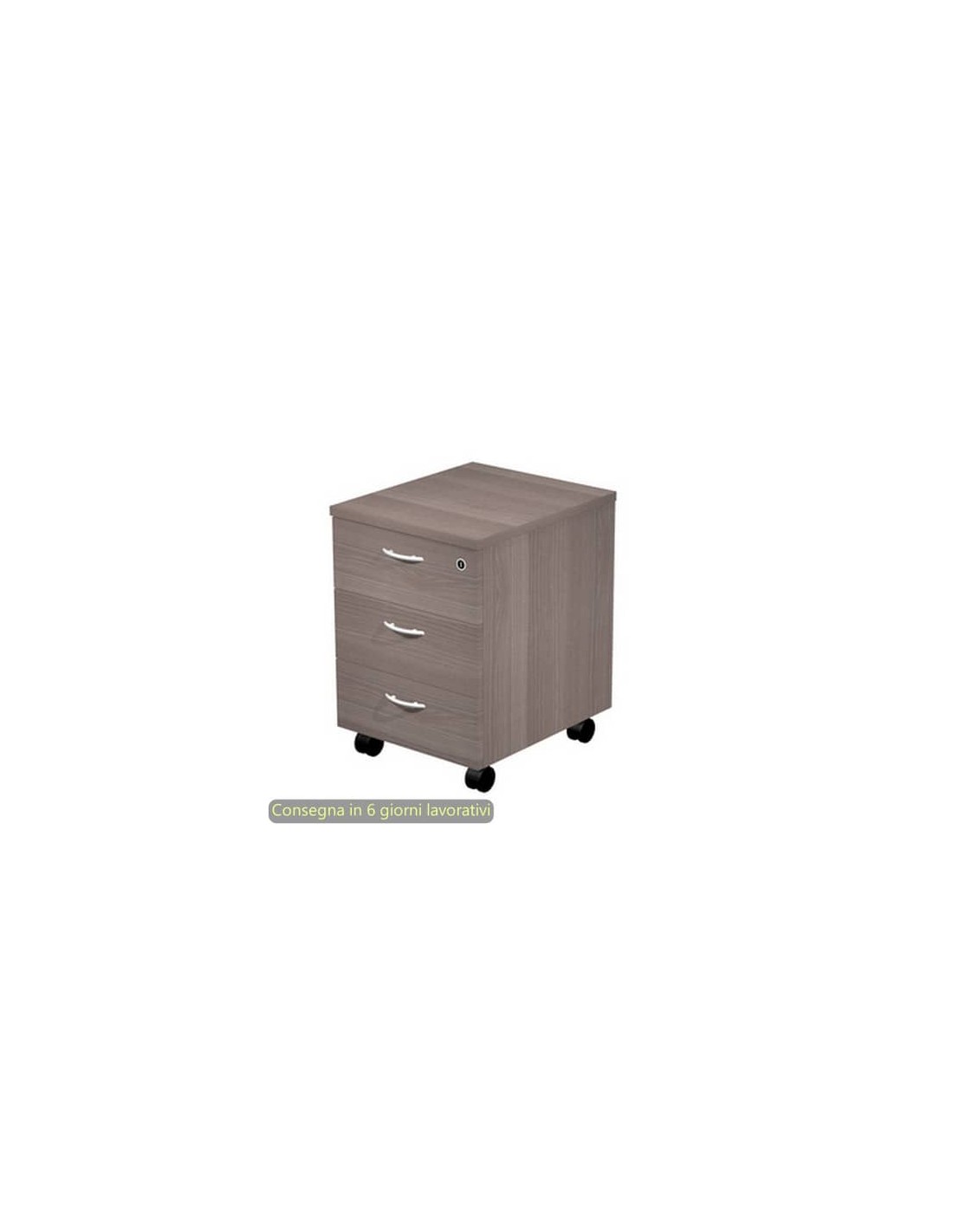 Cassettiera a 3 cassetti della serie Presto, una linea economica ma caratterizzata da soluzioni tecniche di livello superiore. Cassetti scorrevoli su guide metalliche con fermo a fine corsa, di cui il primo fornito anche di serratura. Con ruote pivotanti.