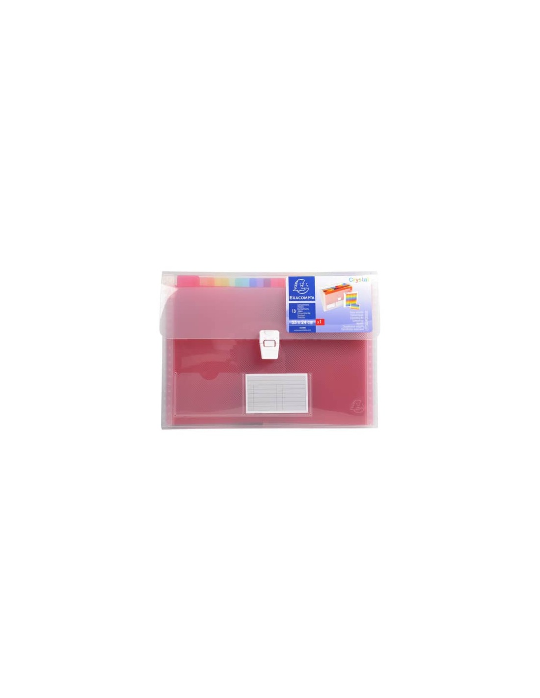 Classificatore 13 scomparti Crystal Colours, chiusura con bottone, Ppl cristallo rigato 700 micron, dorso estensibile, scomparti multicolori, F.to 33x25cm