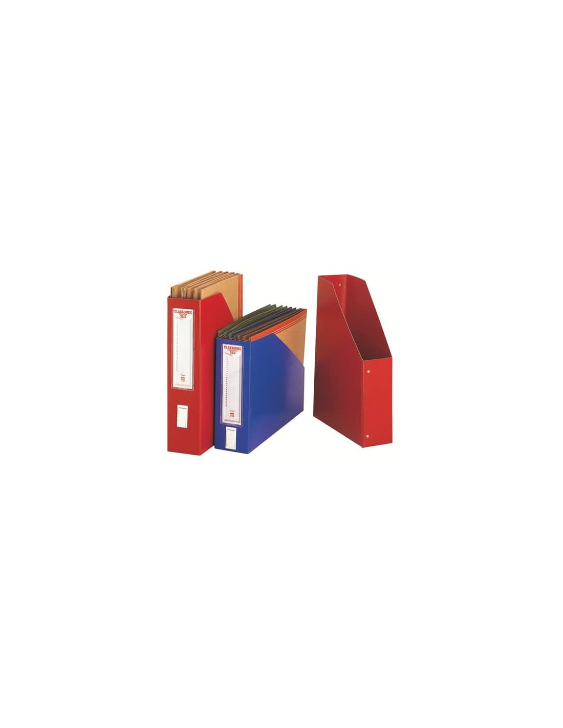 Classificatore con struttura in fibrone e portaetichette in plastica rigida. Colore: blu.