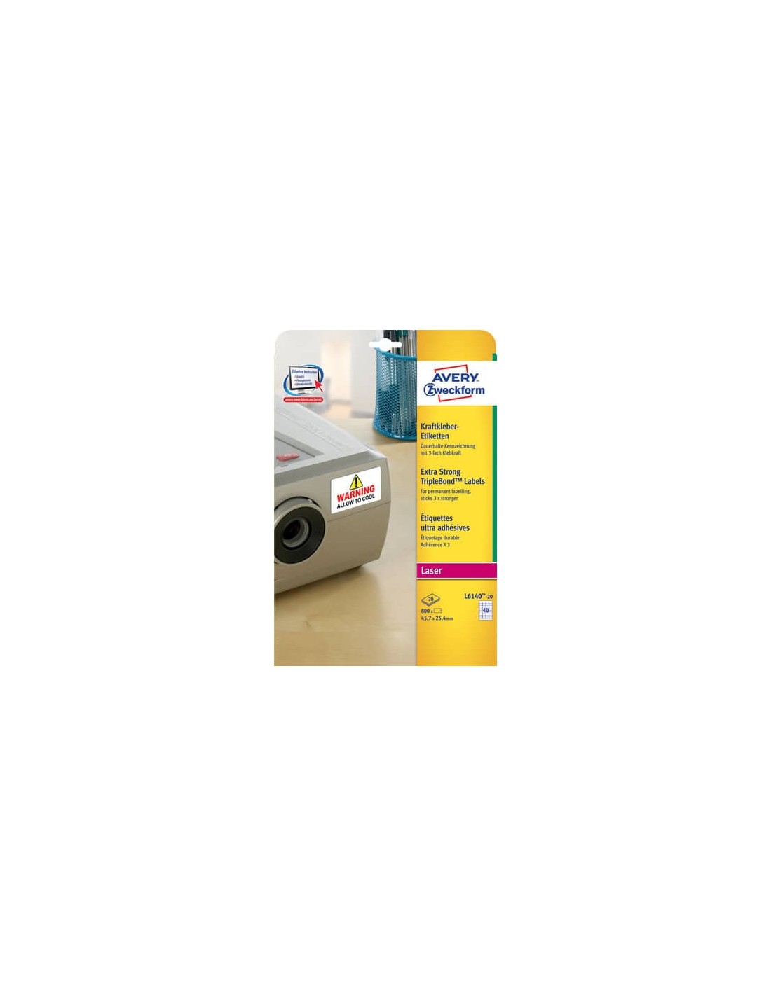 Etichette bianche super aderenti in poliestere, adatte a stampanti Laser in bianco e nero o a colori. Le etichette super aderenti di Avery sono la soluzione perfetta per etichettare in modo permanente e sicuro la proprietà di beni aziendali e prodotti, all’interno come all’esterno. Sono realizzate con un adesivo tre volte più forte rispetto alle etichette convenzionali. Aderiscono perfettamente su superfici difficili, metallo, plastica, superfici dipinte, policarbonato e vetro. Resistono all'acqua, allo sporco, all'olio, agli strappi, ai raggi UV a temperature da -40°C a +80°C. Possono essere stampate con Laser mono colore e a colori. Facili da stampare con il software e modelli preimpostati gratuiti Avery Crea & Stampa.