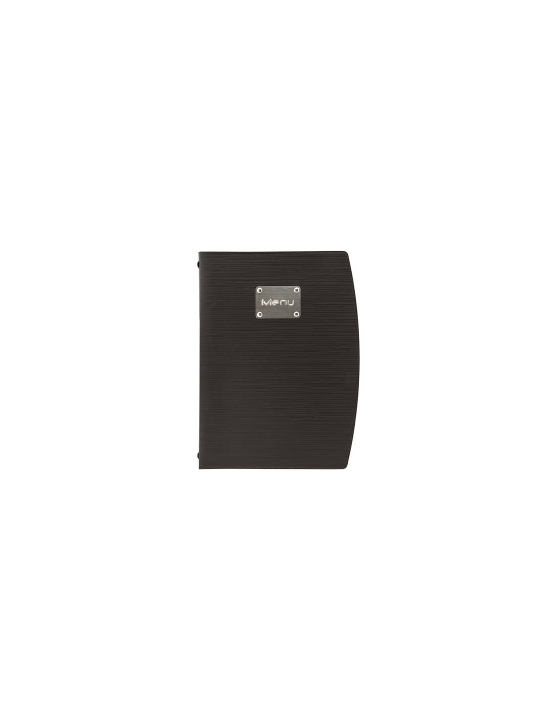 Portamenù della collezione Rio. Formato in A4 con un inserto doppio trasparente compreso (4 facciate). Il portamenù ha la scritta "Menu" incisa su una parte di metallo per una maggiore eleganza e originalità. Adoperabile da qualsiasi struttura. Facile da pulire e forte per durare nel tempo.