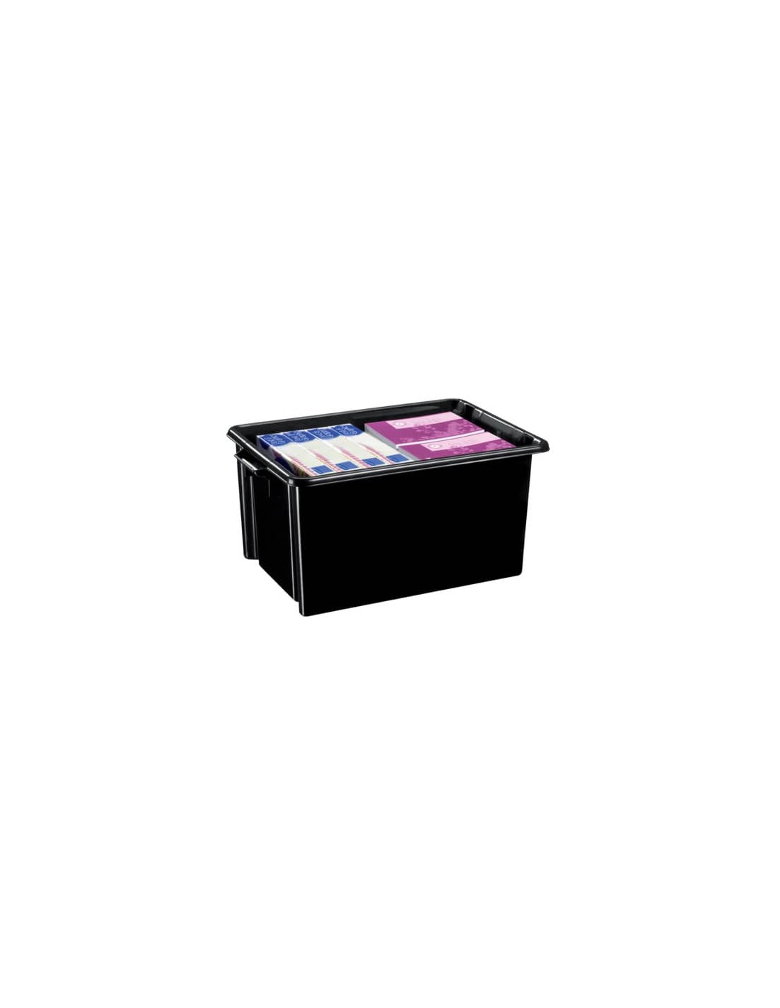 Contenitore molto pratico per archiviare documenti o materiali di consumo. Il bordo largo intorno al perimetro del contenitore lo rende estremamente robusto. 2 maniglie rigide consentono inoltre un facile spostamento. I contenitori possono essere impilate in modo sicuro l'una sull'altra e quando vuote si possono inserire con una semplice rotazione di 180 °. Realizzati in polipropilene 100% riciclato e riciclabile. Dim. 610 x 395 H 285 mm.