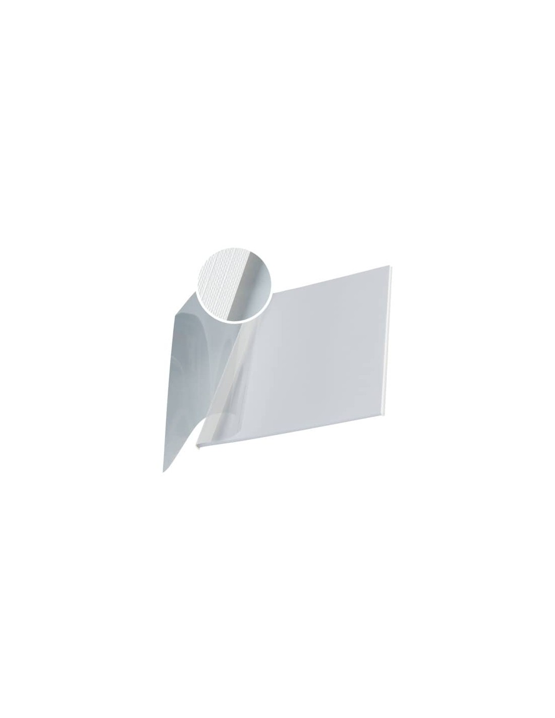 Copertina flessibile con parte anteriore trasparente per design personalizzati. Con struttura in lino nella parte posteriore e copertina anteriore trasparente. Capacità 10-35 fogli. Formato A4. Colore: bianco.