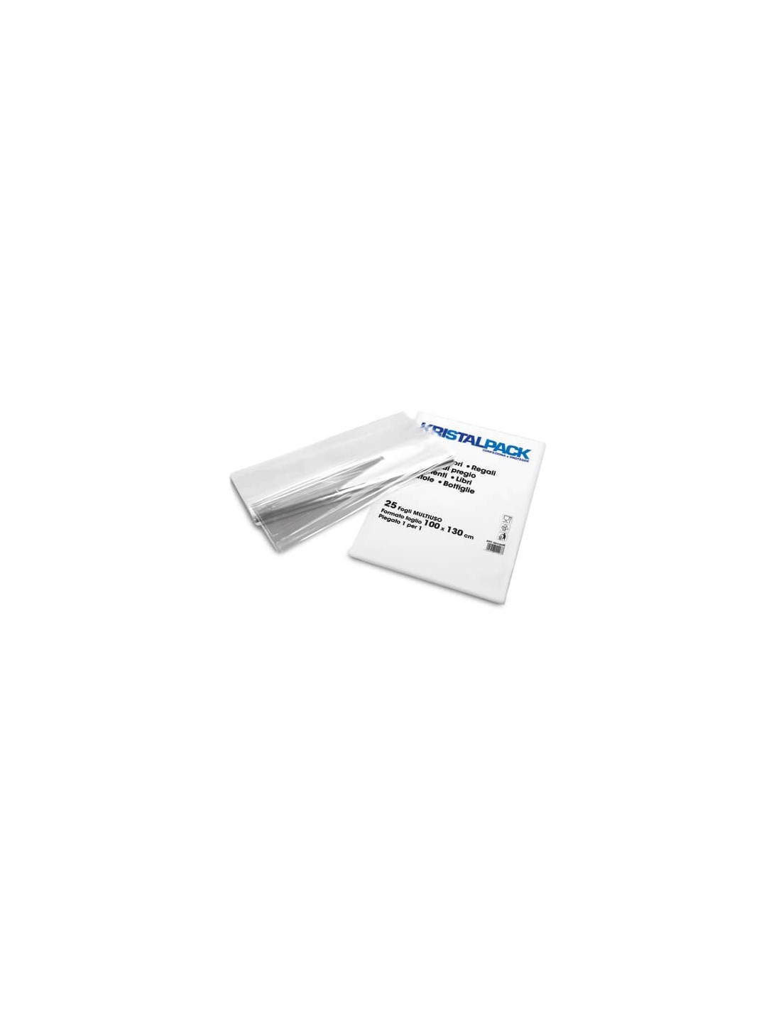 Carta da cesto a fogli Kristalpack, trasparente in polipropilene per il confezionamento di cesti, fiori, regali. Confezione composta da 25 fogli piegati singolarmente. Formato 100 x 130 cm.